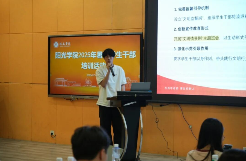 为进一步提升学生干部队伍的综合素质,充分发挥学生骨干在学风建设中的示范引领作用,7月5日上午,阳光学院(福州校本部)创意教室C229内气氛热烈,此次培训采用主题研讨的形式,围绕“我为师生办实事”,将目光聚焦于同学们身边真实的学风问题,共同探讨如何改进“我”身边的学风问题。