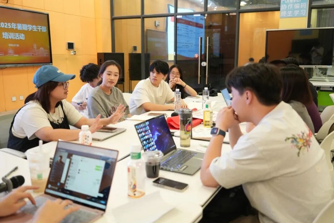 为进一步深化学生干部的角色认知与实践能力,7月6日下午,暑期学生干部培训持续进行。本次研讨聚焦“奔跑校园”“书香校园”品牌打造、宿舍文化建设、“文明素养提升”活动,重点探讨如何有效优化现有活动、提升其影响力与参与度,以及构思新学期可策划的精品活动与常规活动方案,为新学期工作谋篇布局。