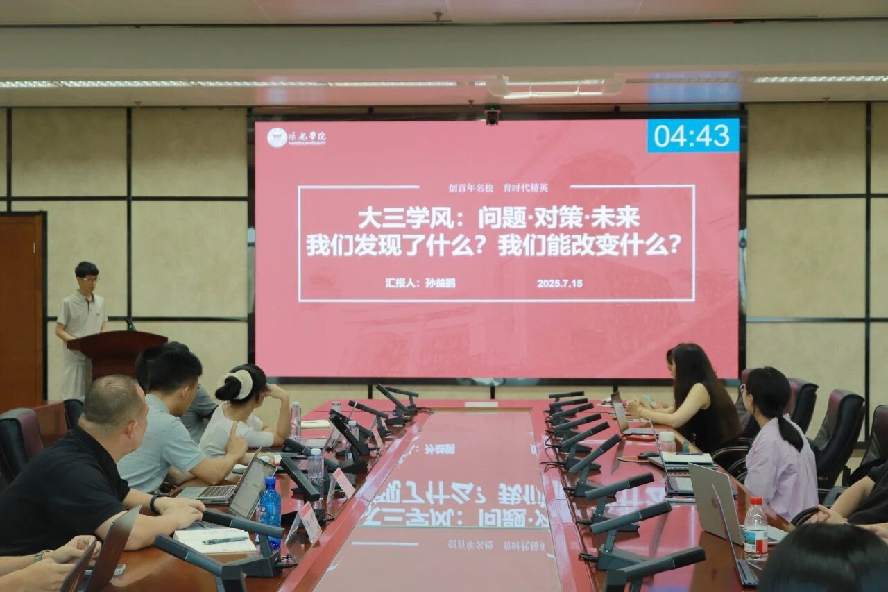 7月16日下午,学生工作处从各学院中选取8位代表进行集中汇报。汇报会现场,代表们聚焦学风建设核心任务,剖析了当前本学院的学风现状、深层次问题及成因,重点研讨学风建设系统工程的长效机制,着力构建可持续提升的学风建设工作体系。