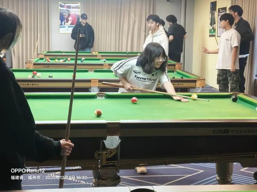 活动结合实操练习与技巧讲解,既有效提升了全体成员基础击球的稳定性,激发了大家对台球运动的兴趣,为后续进阶学习筑牢根基,也进一步增进了成员间的技术交流,强化了团队凝聚力。