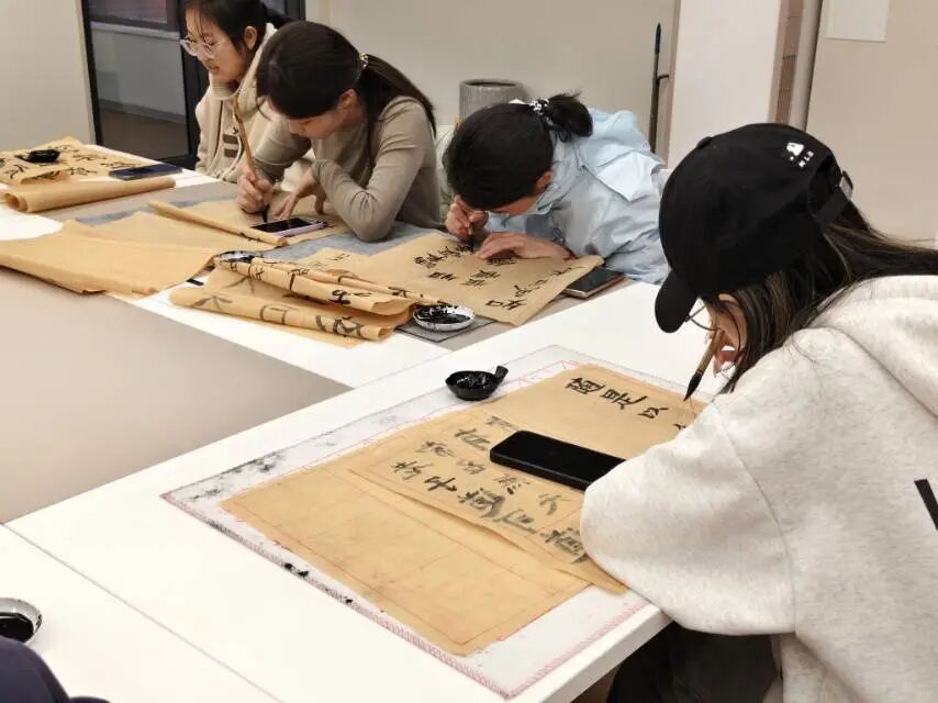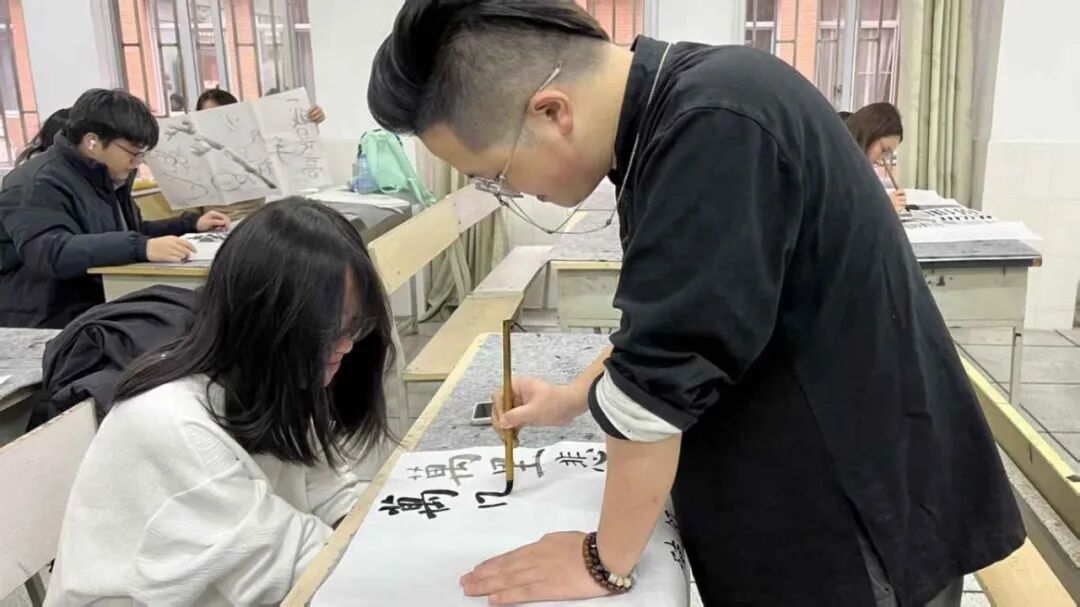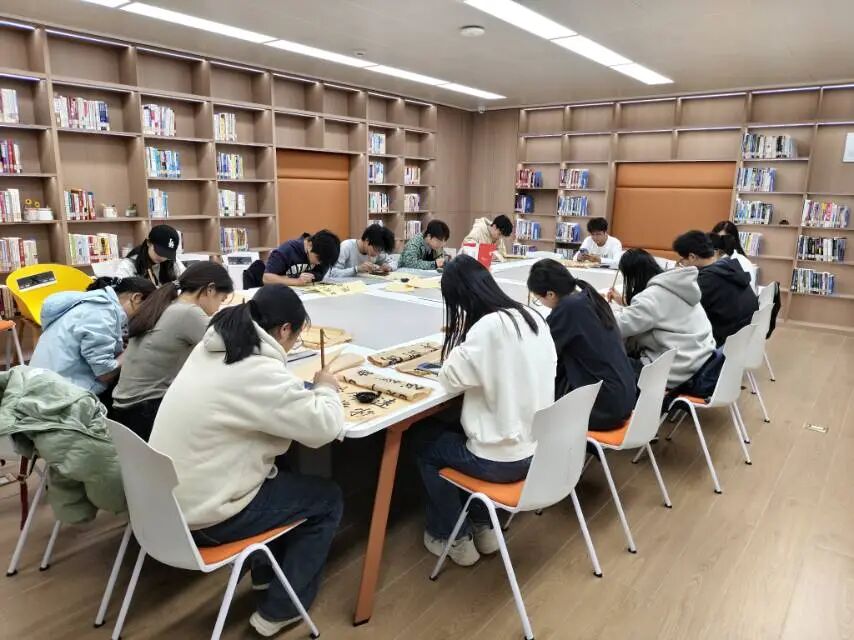 活动中,指导老师现场进行笔法示范,细致讲解书写发力技巧与笔画形态把控要点,清晰传授书写章法。在场人员凝神观摩、认真领会笔法精髓,在专业讲解与直观示范中,夯实楷书书写基础,感受书法笔法的严谨与精妙,沉浸式体悟传统书法的笔墨韵味。