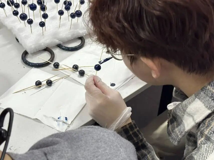 创作过程中,众人尽情探索色彩搭配的多样可能,激发对色彩关系的无限想象,在指尖的匠心雕琢里,真切触摸传统漆艺的独特韵味,感受非遗手作带来的沉浸式创作乐趣。