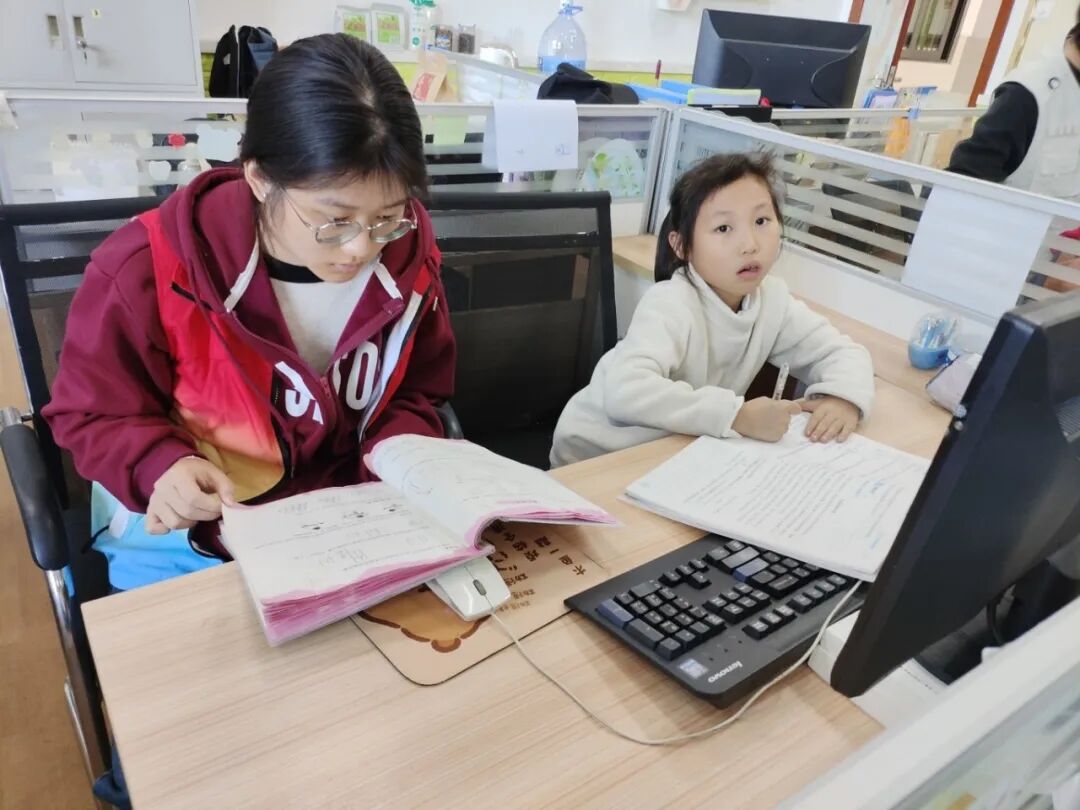 辅导之余,志愿者们主动化身“大朋友”,倾听孩子们的校园趣事与小烦恼,分享成长经验,陪他们聊兴趣爱好,没有说教与隔阂,只有平等的交流与真诚的关怀,在轻松的互动中,彼此的信任与感情悄然升温。