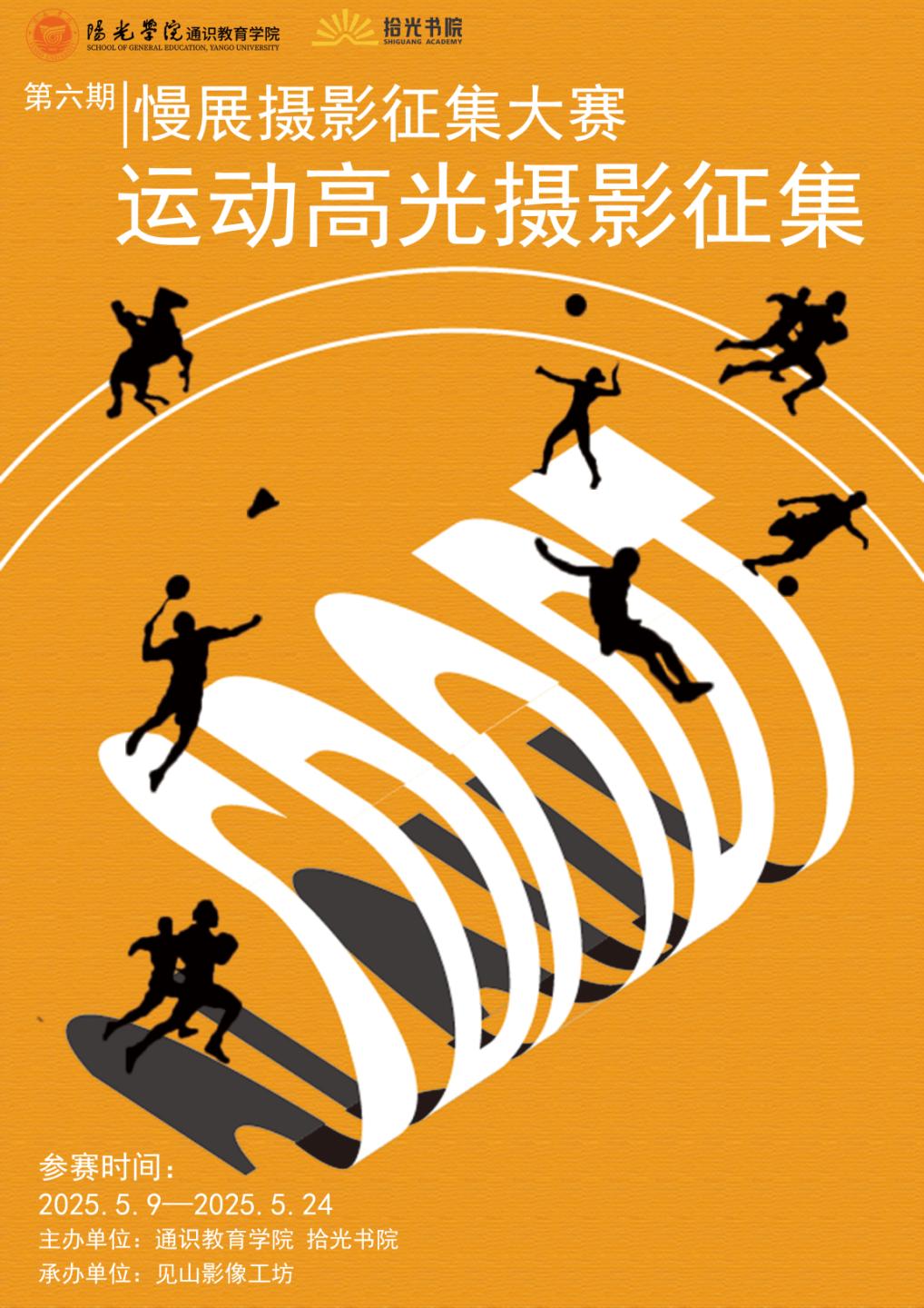 拾光书院第六届“慢展”摄影征集大赛圆满落幕。本届大赛以“阳光体育,动的都懂”为主题,面向全体师生发起摄影征集,旨在鼓励学生通过影像定格运动瞬间,在审美表达中展现阳光学院“博雅·实践”通识教育理念。