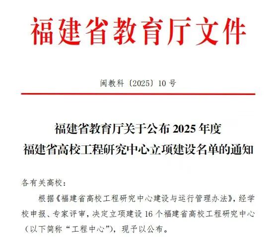 新增省市级科研平台3个,含福建省高校工程研究中心1个