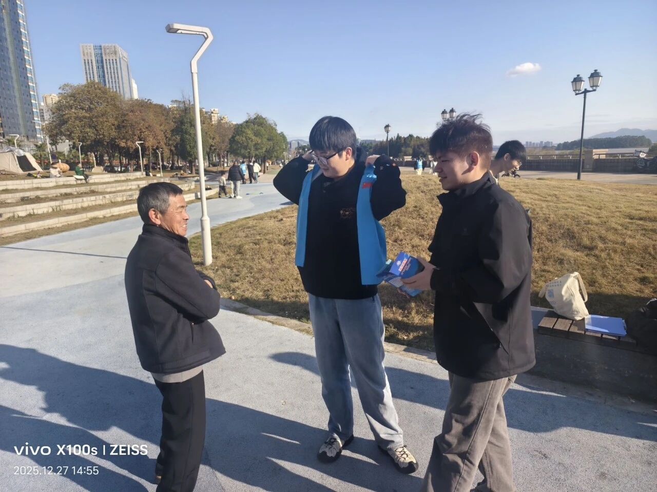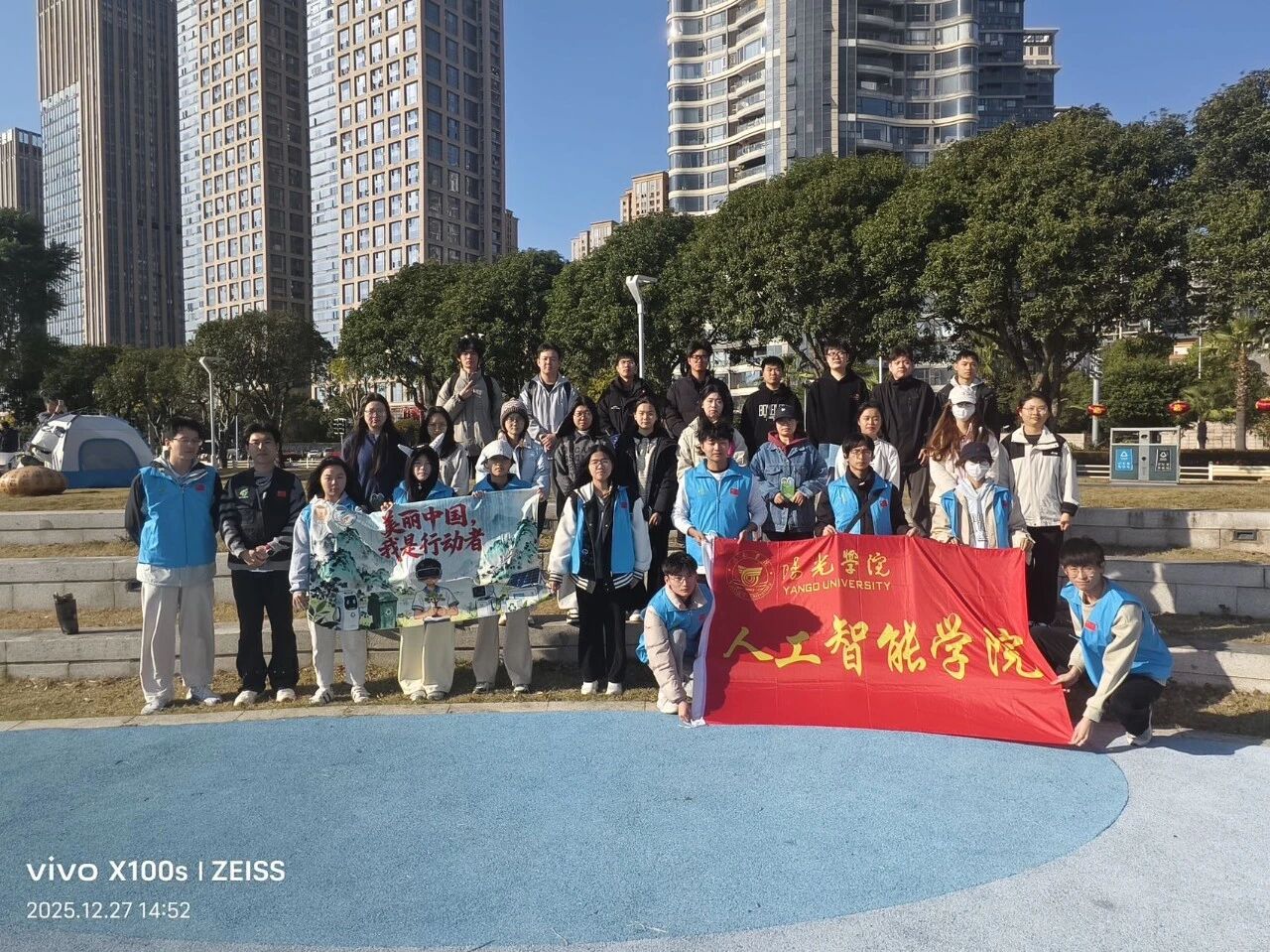 2025年12月27日,阳光学院人工智能学院安澜数智护航志愿服务队前往东江滨儿童公园,开展“安澜清流,数智同行”志愿宣传活动,30余名志愿者集结出发,沿1.6公里江岸开展守护母亲河宣讲行动,用青春之声传递生态环保理念,助力流域生态保护。