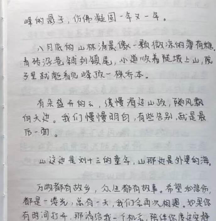 外婆的小卖部藏着人间烟火,山间的风、村口的云、温热的饭菜,都是抚平伤痛的良药。刘十三从执着于功成名就,到慢慢接纳自己的平凡,珍惜身边的温暖,这份转变让我深受触动。我们总在追逐遥不可及的目标,为了未达的期待焦虑内耗,却忽略了生活里触手可及的温柔:家人的叮嘱、朋友的陪伴、清晨的阳光、傍晚的晚风,这些细碎的美好,都是治愈心灵的力量。